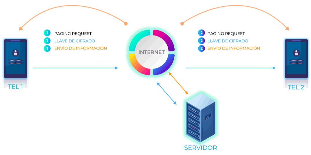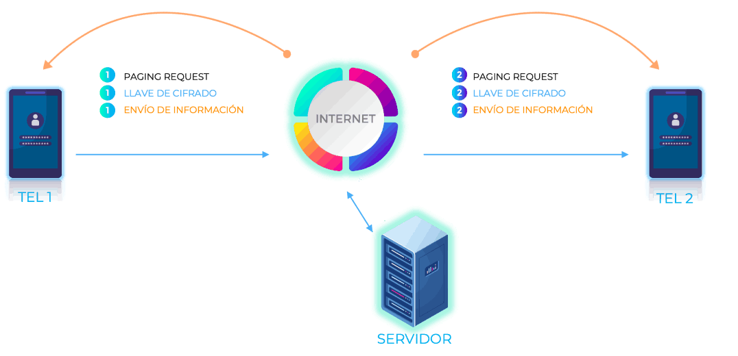 llamadas de Voz, llamadas en conferencia, video llamada, mensajes de texto, envío de archivos, envío de contactos. Todo esto de forma segura ya.